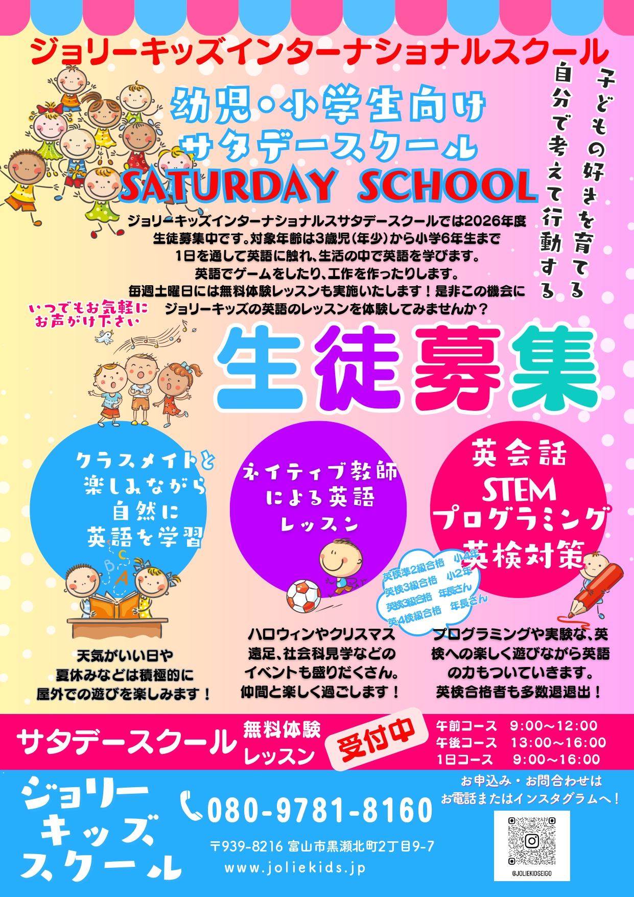 さらに、幼児・小学生向けサタデースクールの受講生も随時募集していますよ!