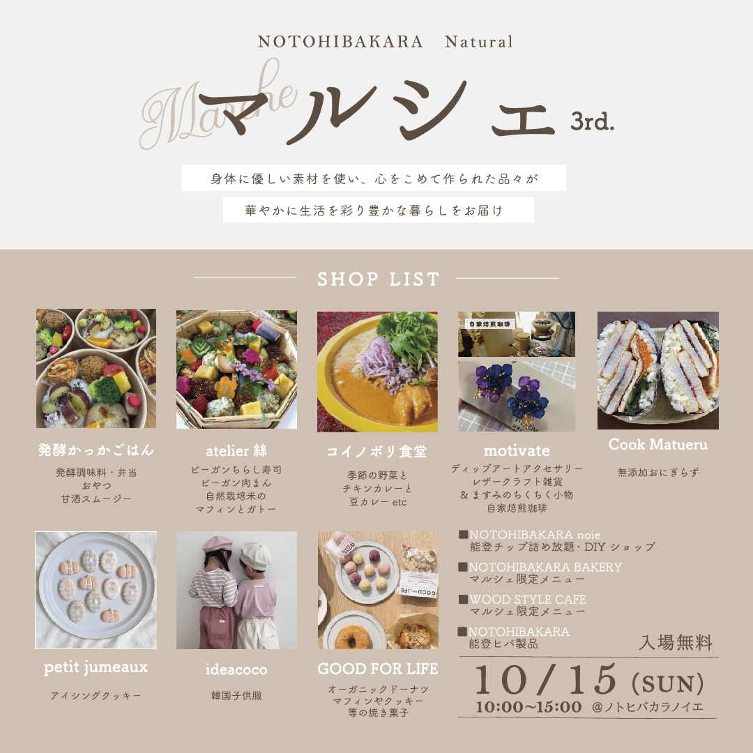 | イベント名 | NOTOHIBAKARA Natural マルシェ 3rd.|NOTOHIBAKARAnoie |