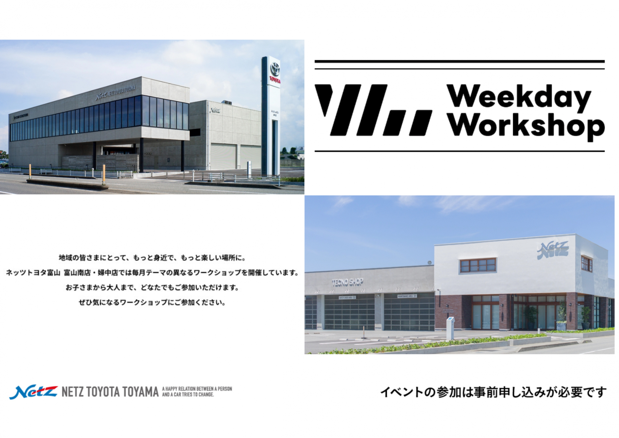 毎日をもっと楽しく、愛おしく思えるように、「ネッツトヨタ富山」では、2週間に1度、テーマの異なるワークショップを行う「Weekday Workshop」。