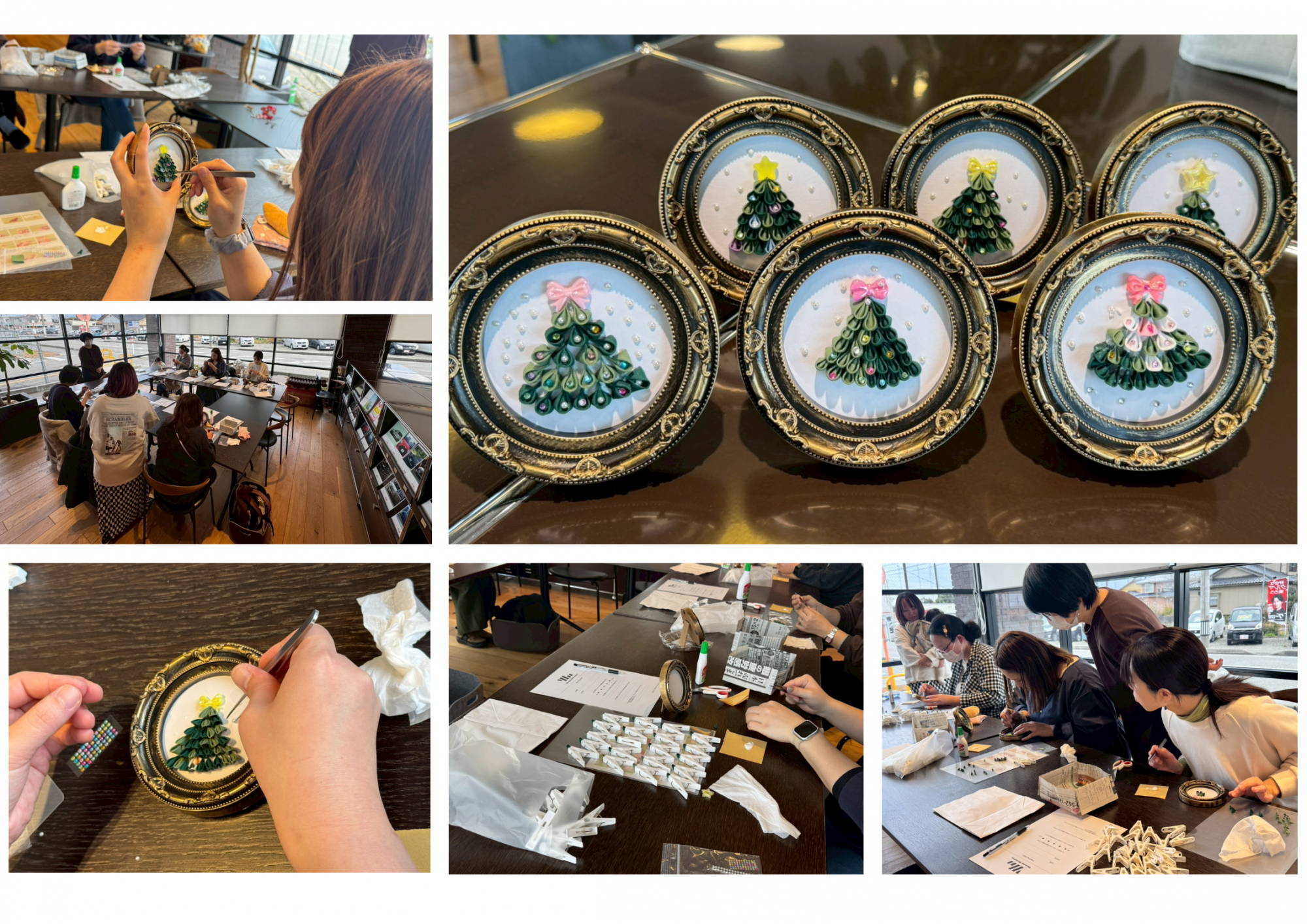 日本の伝統工芸である つまみ細工 を用いたクリスマスツリーは、なかなか出会えない特別な作品。和の繊細さとクリスマスの華やかさが合わさり、どれも本当に素敵な仕上がりでした。