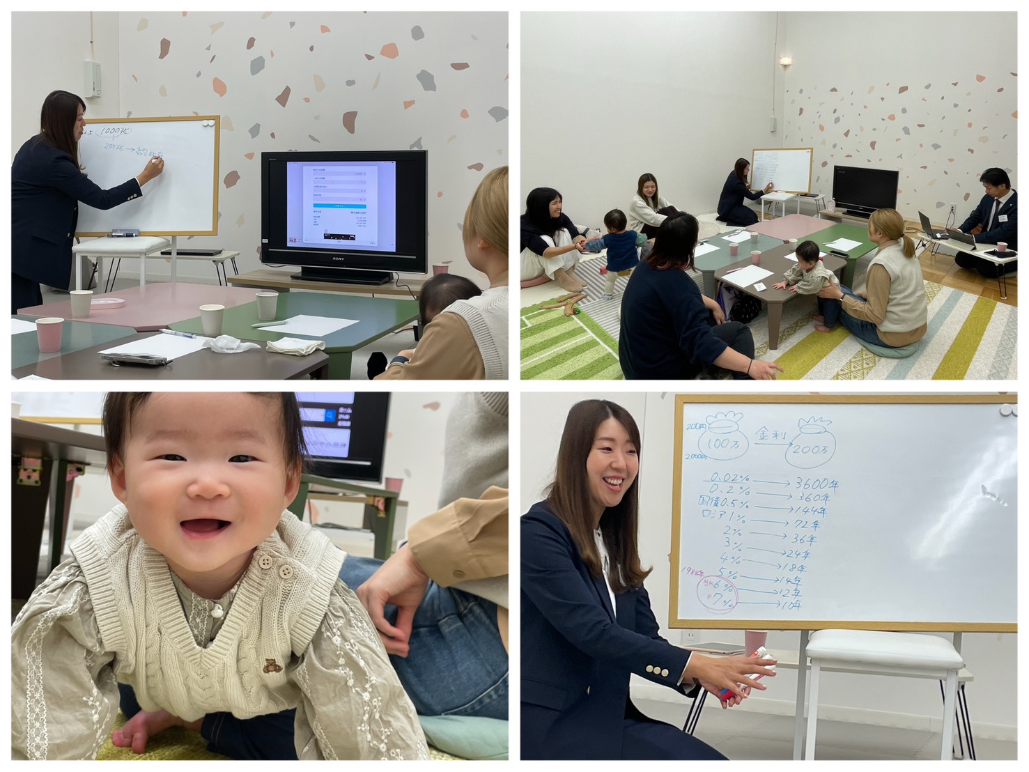 「なんとなくの知識はあるけど、何からどうしたら良いかわからない…!」というお悩みを持つママたち。セミナー中はクイズに答えながら(笑)、楽しくお金の知識を学ぶことができました♡
