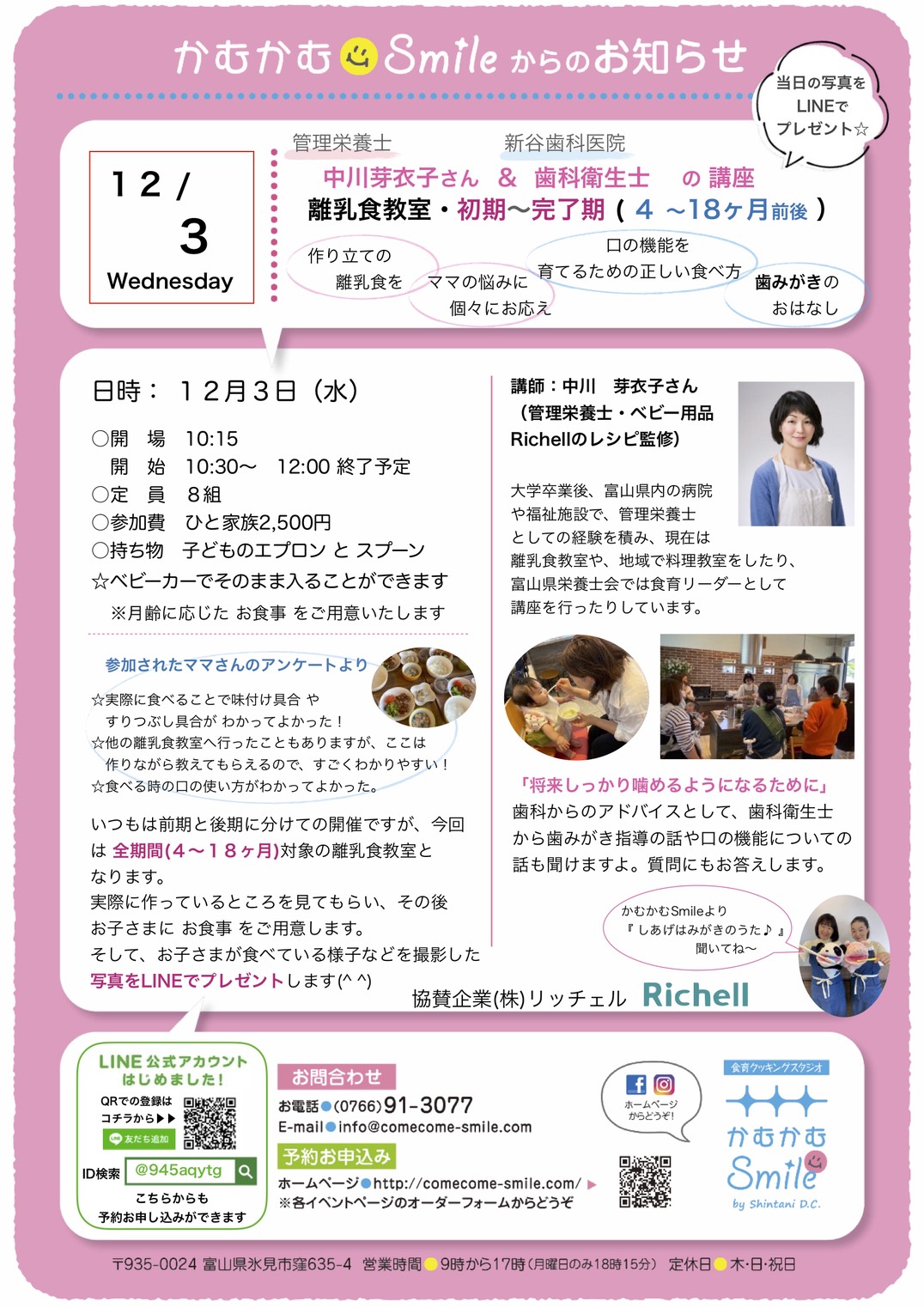 そんな『かむかむSmile』さんから、毎回大人気の離乳食レッスン開催のお知らせをいただきましたよ♪