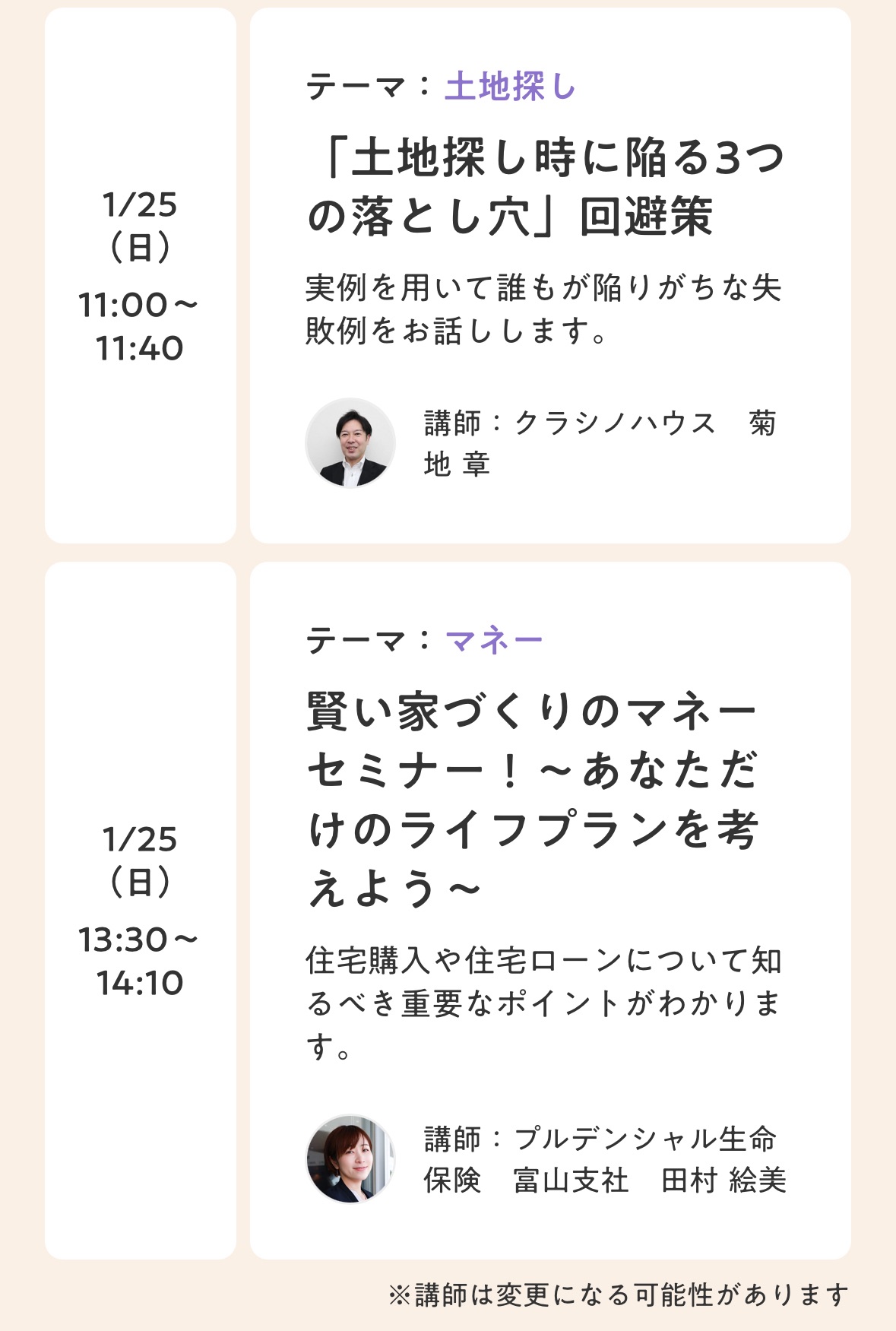 特に最近は、物価や光熱費の高騰もあり、『子育て世代に嬉しいお金』の話だったり、家づくりのはじめの一歩となる『土地選び』の話など…気になる話題が盛りだくさん!