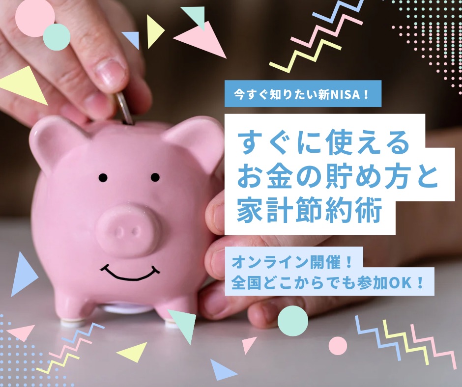 | イベント名 | 今すぐ知りたい新NISA!『すぐに使えるお金の貯め方と家計節約術』|女性のためのマネーセミナー |