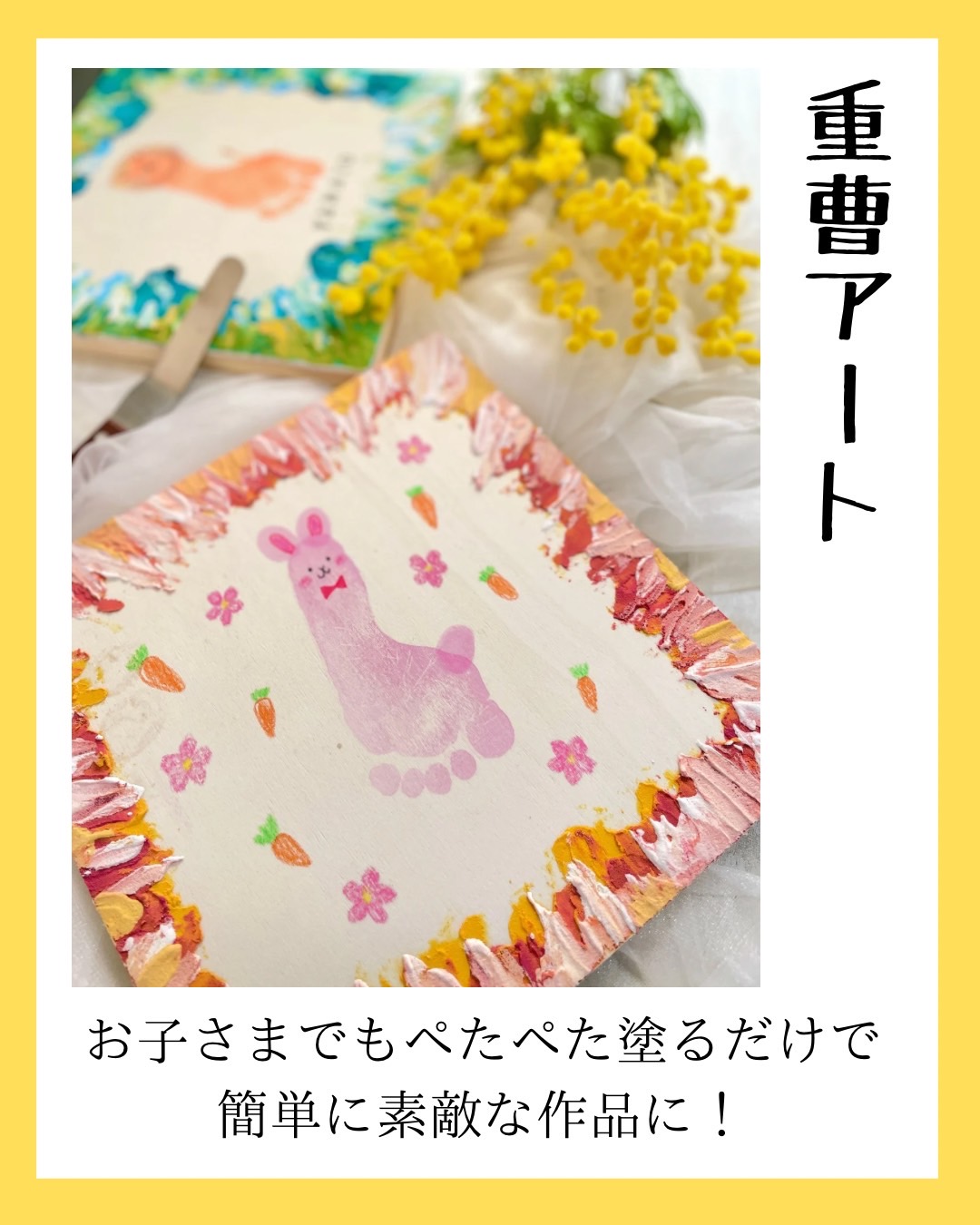 重曹と絵の具を練り合わせた画材を使ってデザインしていくことで仕上げるアート作品です。家族で一緒に作る作品はママ・パパにとっても、子どもにとっても大切なものとなること間違いなし!
