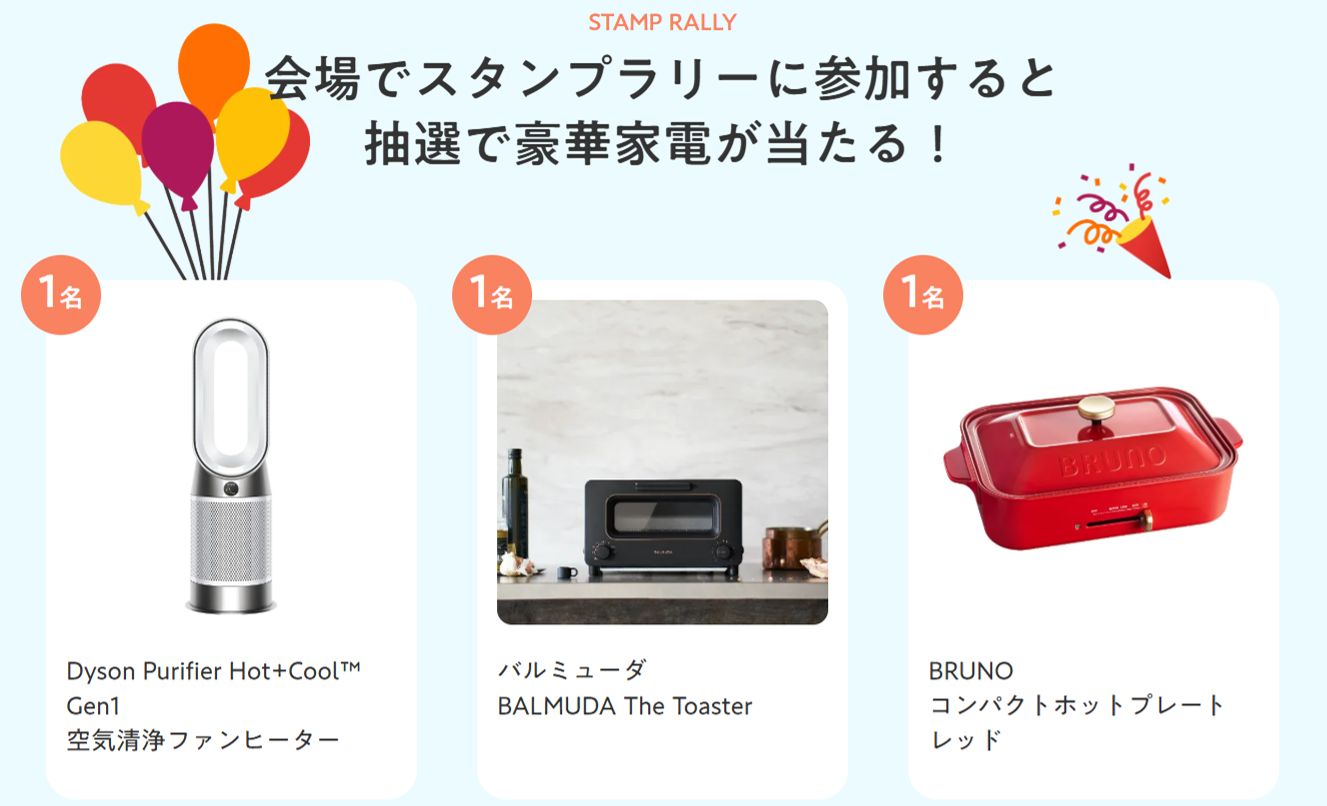 また、会場でスタンプラリーに参加すると、抽選で豪華家電が当たるかも⁉