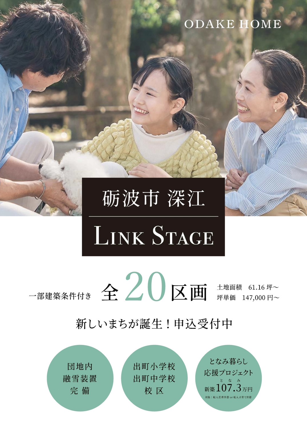 そんな「オダケホーム」さんがこれから家を建てる方にオススメする、イオンモールとなみ近くにある『LINK STAGE砺波市深江』を今回ご紹介させていただきます!