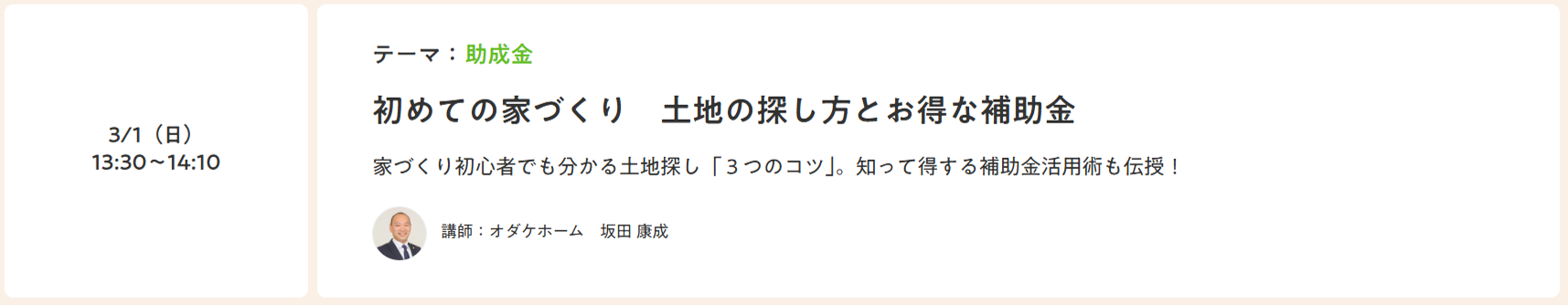 土地情報や資金計画など、何からはじめたら良いかわからない!という人にこそ参加してもらいたいのが、このセミナーです。