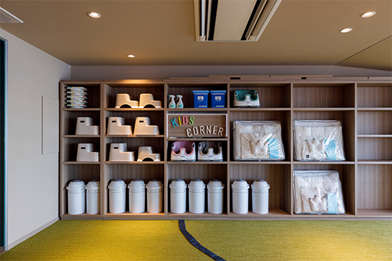 館内には、ベビーバスや館内着の用意など子ども向けのサービスが整っています。ベビーカー置き場もあり、家族でのお出かけ先としても多くの人に選ばれていますよ♪
