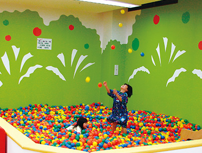 お祭りランド内にあるキッズガーデンは、子ども達に人気の遊び場です。ボールプールのほか、赤ちゃん向けのコーナーがあり、小さなお子さんも楽しく過ごせます。