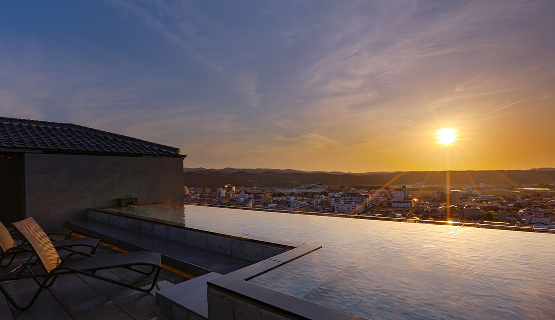 2024年4月にリニューアルした、最上階にある展望露天風呂は、大人にとっても癒しのひととき。空が広く感じられ、天気が良ければ白山連峰まで見渡せることがありますよ!日中と夜で、景色や空気の違いを感じてみてくださいね。
