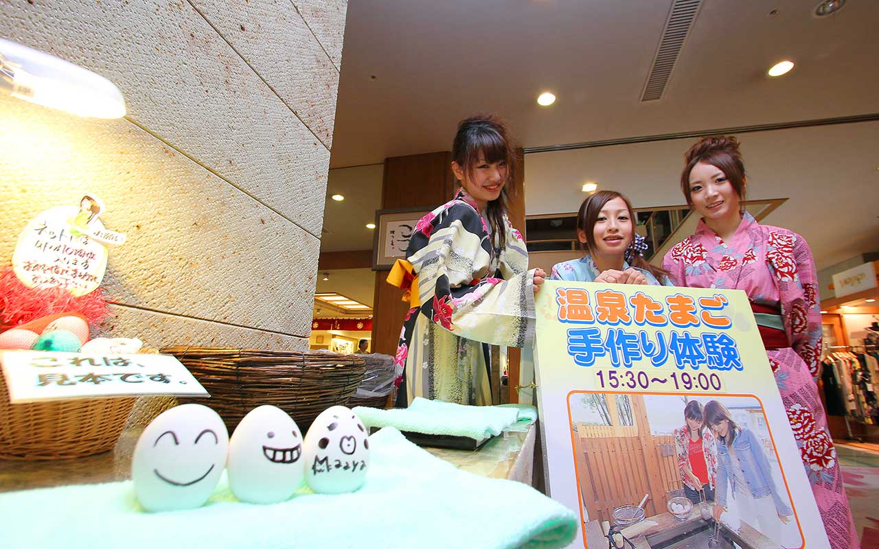 ロビーでは、温泉たまごの手作り体験をすることができます。自家源泉で作る、できたての温泉たまごは格別です♡蒸し温泉まんじゅうや、温泉蒸しジャガイモなど、ここならではのおやつも楽しめますよ。