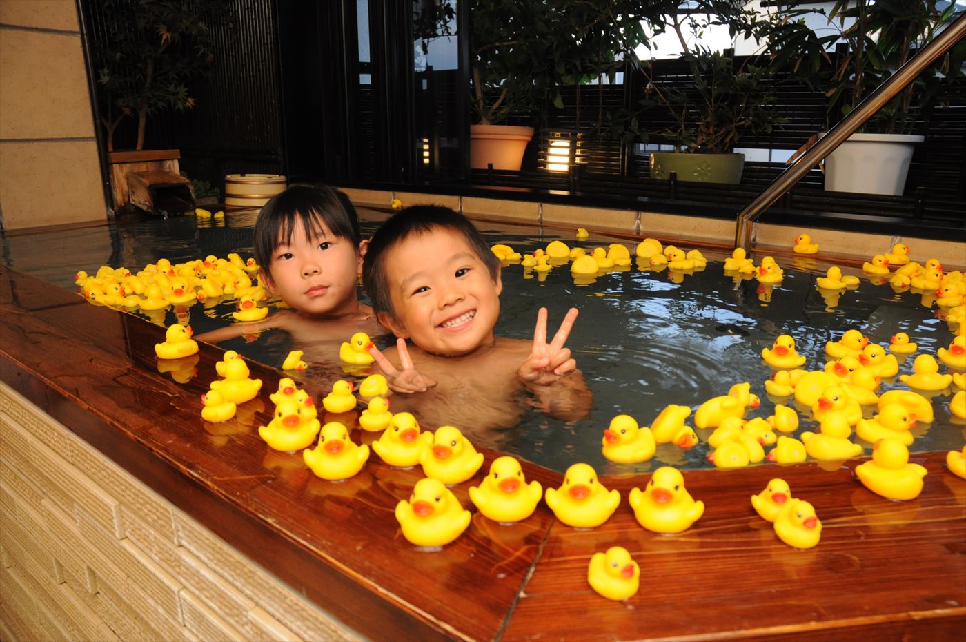 200羽のアヒルを浮かべて遊べる貸切風呂は、お兄ちゃん・お姉ちゃんも大興奮間違いなし!親子の素敵な思い出になりますよ。