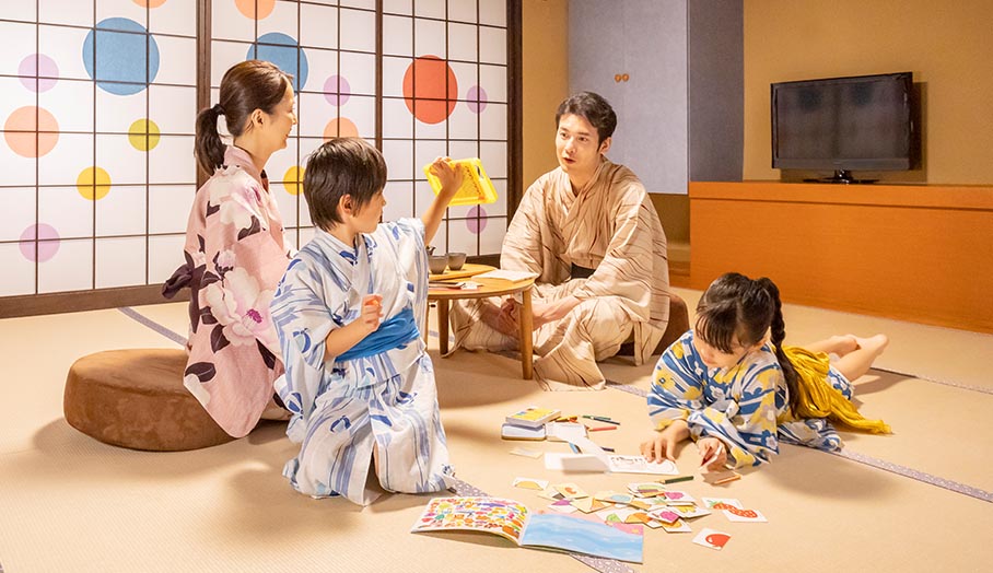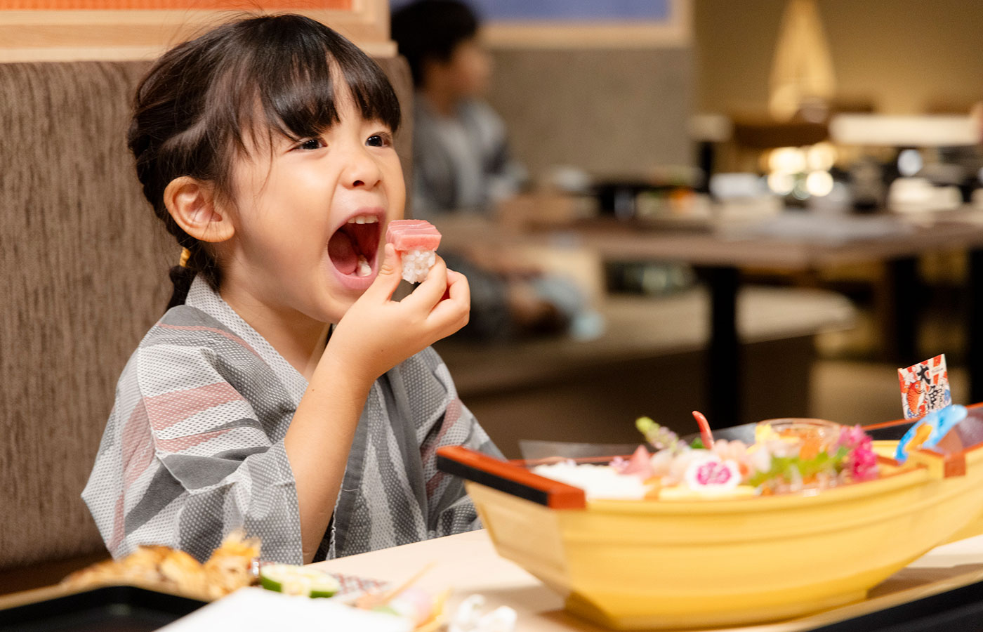 離乳食やキッズスペース、子どもサイズの浴衣など、子どものためのサービスが満載です。