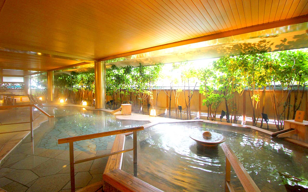 吉祥やまなかでは、山中温泉のなめらかな湯を、風情ある露天風呂や広々とした大浴場で堪能できます。自然に囲まれた空間での入浴は、心と体の疲れを癒す贅沢な時間です。