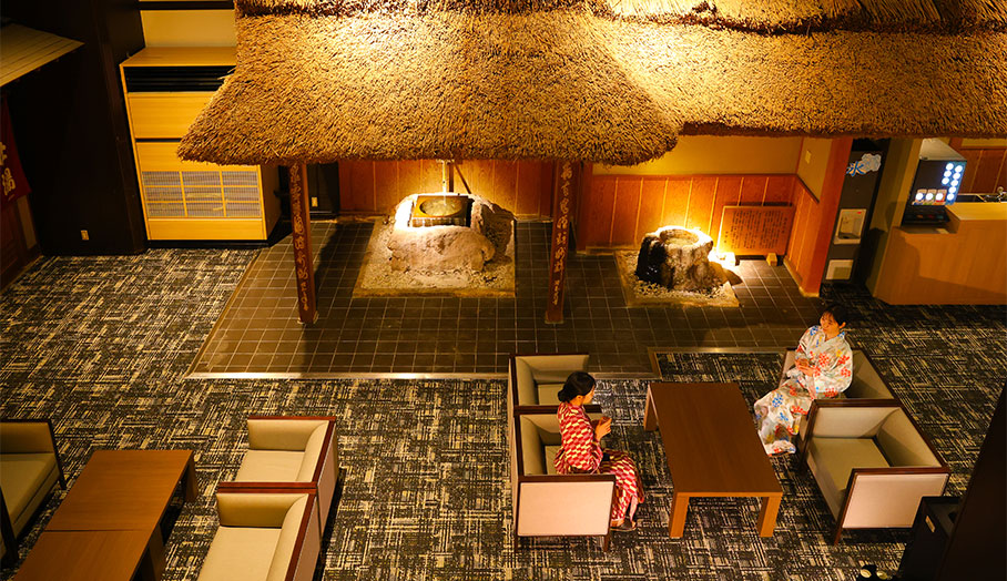- 夜には、ロビーで伝統芸能「山中節」が楽しめる!