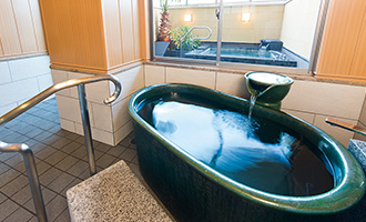 人気の高濃度炭酸泉や季節ごとに香りが変わる湯を楽しめるほか、小さなお子さん安心の浅いお風呂も用意されています。