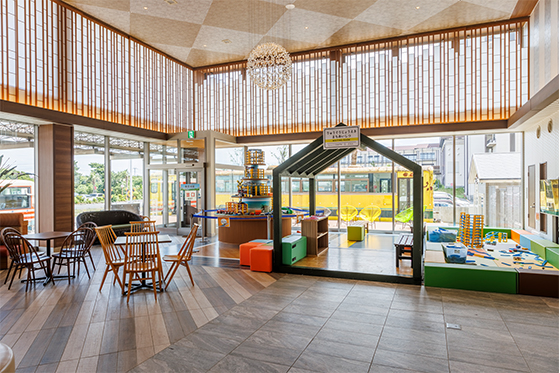 館内には、体を使って思いきり遊べる遊具やおもちゃが揃ったキッズスペースがあります。