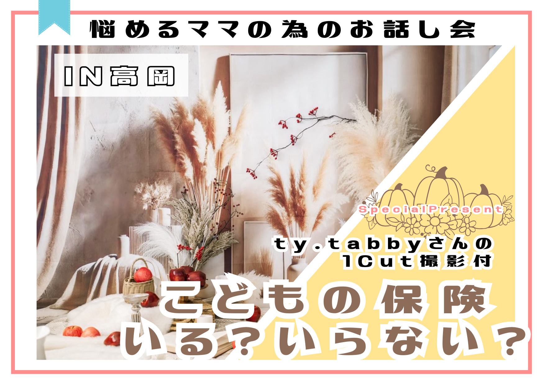イベント名 | 【ty.tabbyさん撮影付♡】専門家と一緒に考えよう!こどもの保険、いる?いらない? in高岡 |