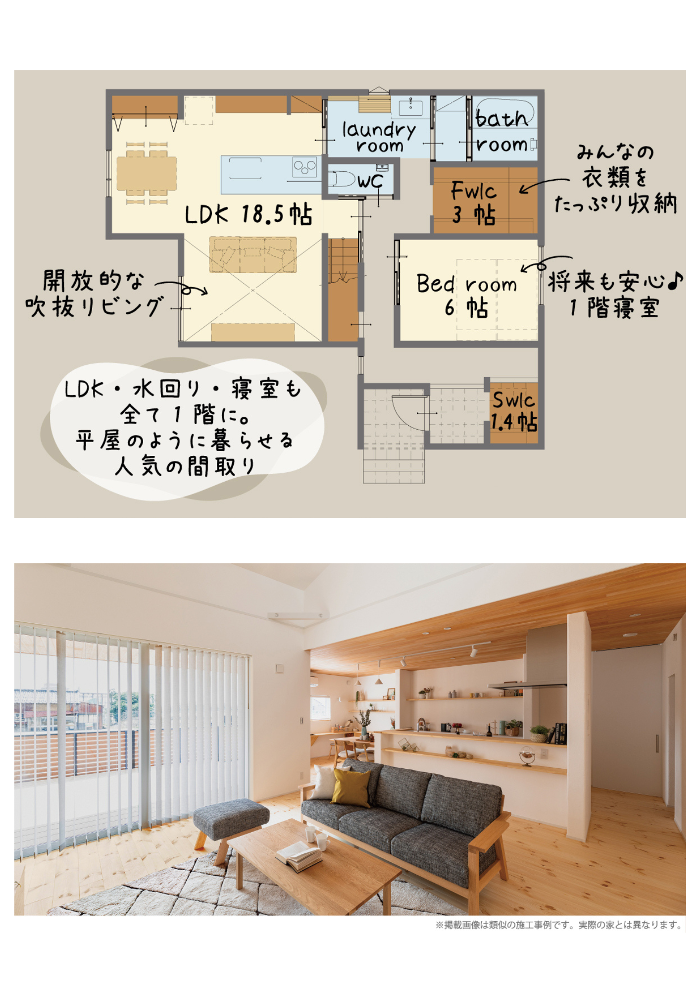 今回ご見学いただけるのは、1階に寝室を設けた"平屋ライク"な33.7坪・4LDKの住まいです!