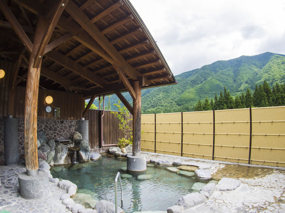 おすすめのお風呂は、開放感抜群の露天風呂です!日中は、明宝の大自然を肌で感じられるほど、周囲には緑溢れる風景が広がっています。夜には満天の星空が広がり、まるで星と一緒に露天風呂に浸かっているような感覚に♪
