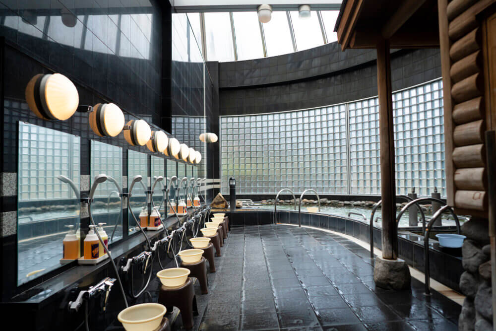 - 屋内なのに日の光が入る、解放感溢れる大浴場でくつろげる