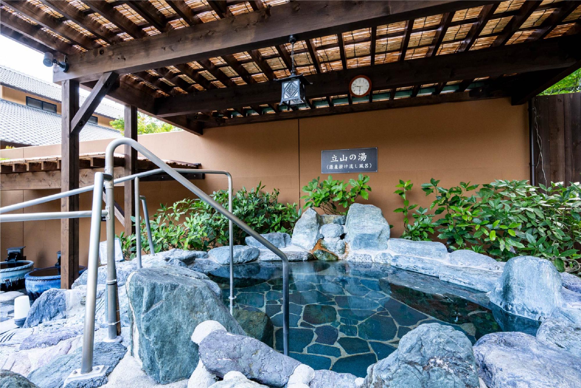- 源泉かけ流しの、贅沢な露天風呂がある