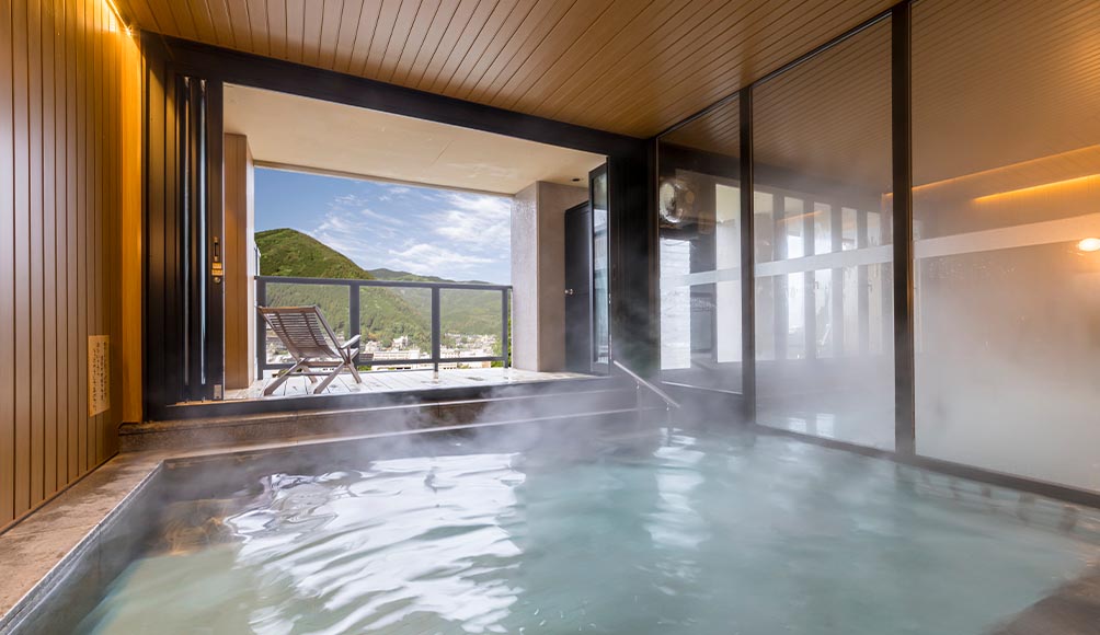 温泉は、内湯・露天風呂・家族風呂があります。露天風呂は、下呂市を一望できる贅沢な空間です。日本三名泉のひとつ下呂温泉の名湯を、たっぷり堪能できます♪