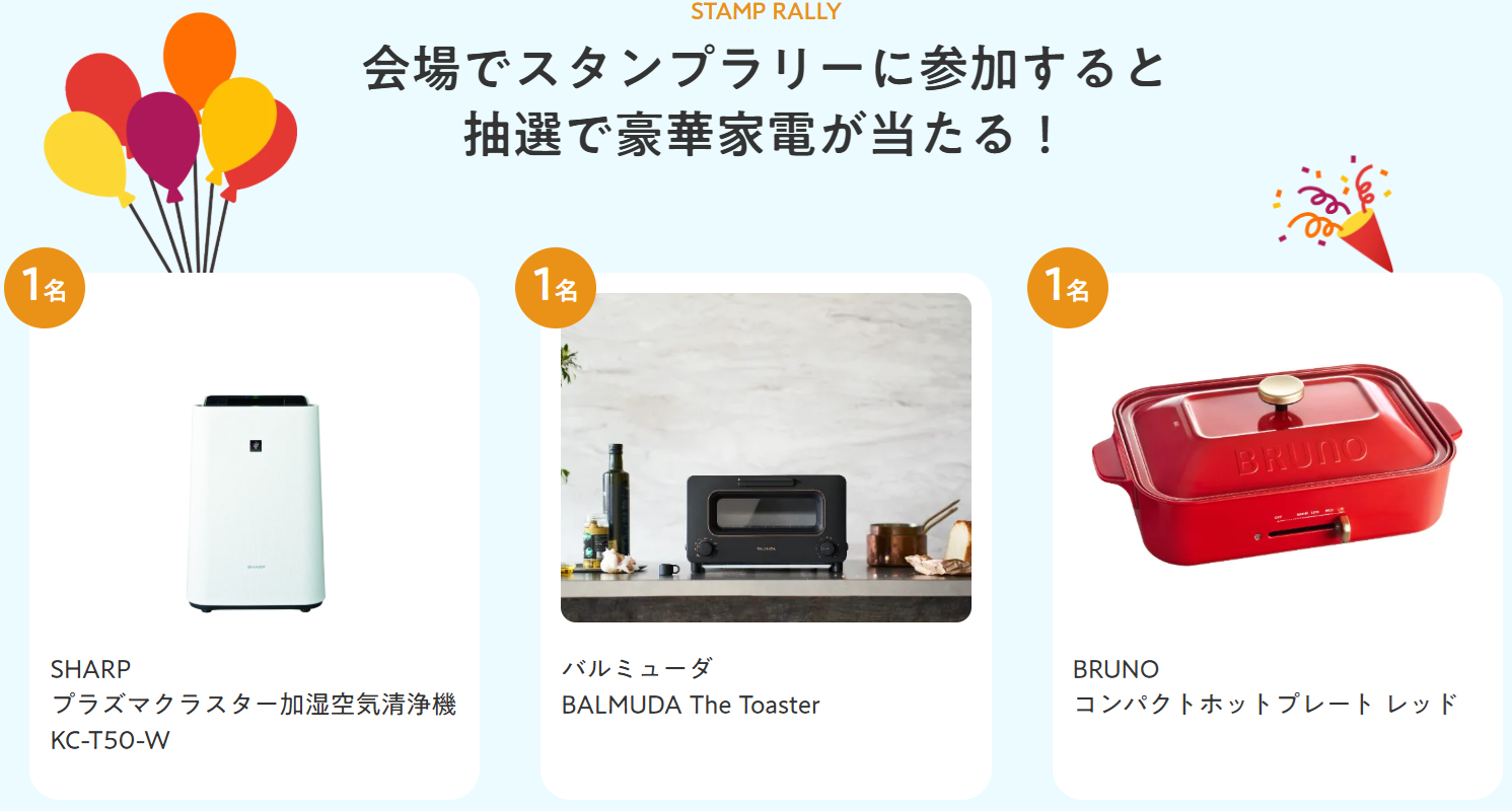また、会場でスタンプラリーに参加すると、抽選で豪華家電が当たるかも⁉