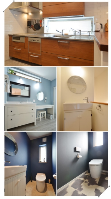 床材や建具、洗面台、キッチン、内装塗料等は自分たちの目で直接確かめ、手配しました。