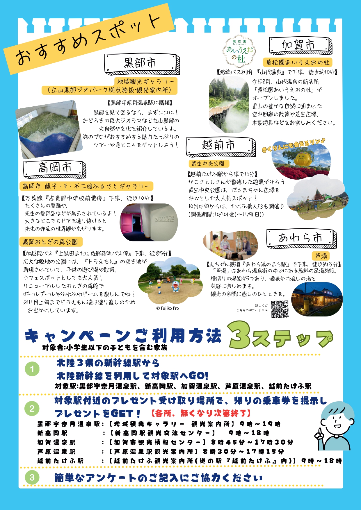 『北陸新幹線で行こう!家族で楽しむ北陸3県キャンペーン』のキャンペーン期間は以下のようになっております。