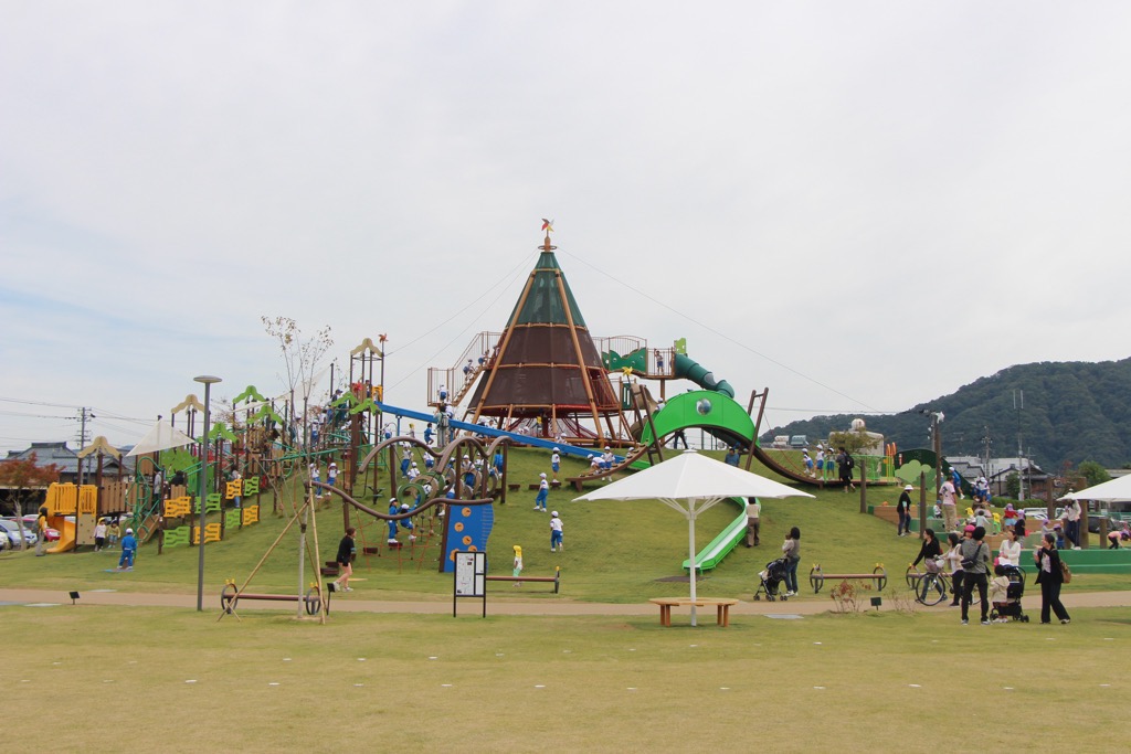 まるで遊園地に来たかのような圧倒的スケールの『武生中央公園』は、絵本作家・かこさとし氏の世界観を取り入れた遊具がたくさんあります。