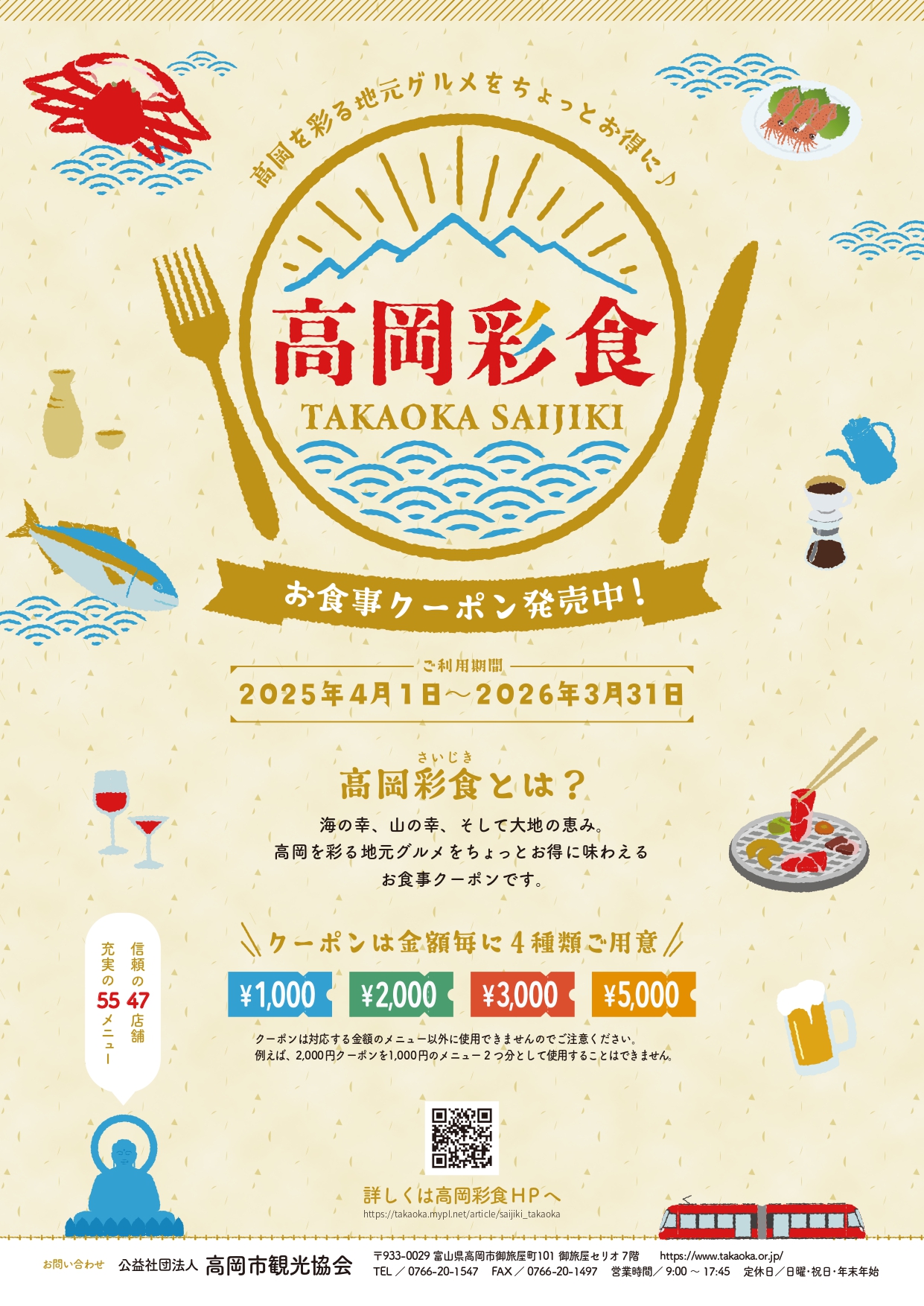 高岡を彩る地元グルメをお得に味わえるお食事クーポン【高岡彩食(たかおかさいじき)】。