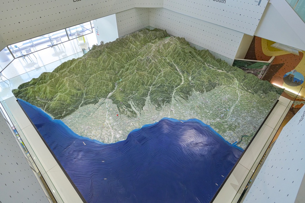 展示空間では、立山黒部エリアの山・川・海の大自然の雄大さを感じられ、特に全国でも珍しい巨大な立体ジオラマ「ダイナマップ」は必見!施設2階から見える北アルプスの峰々も圧巻です◎