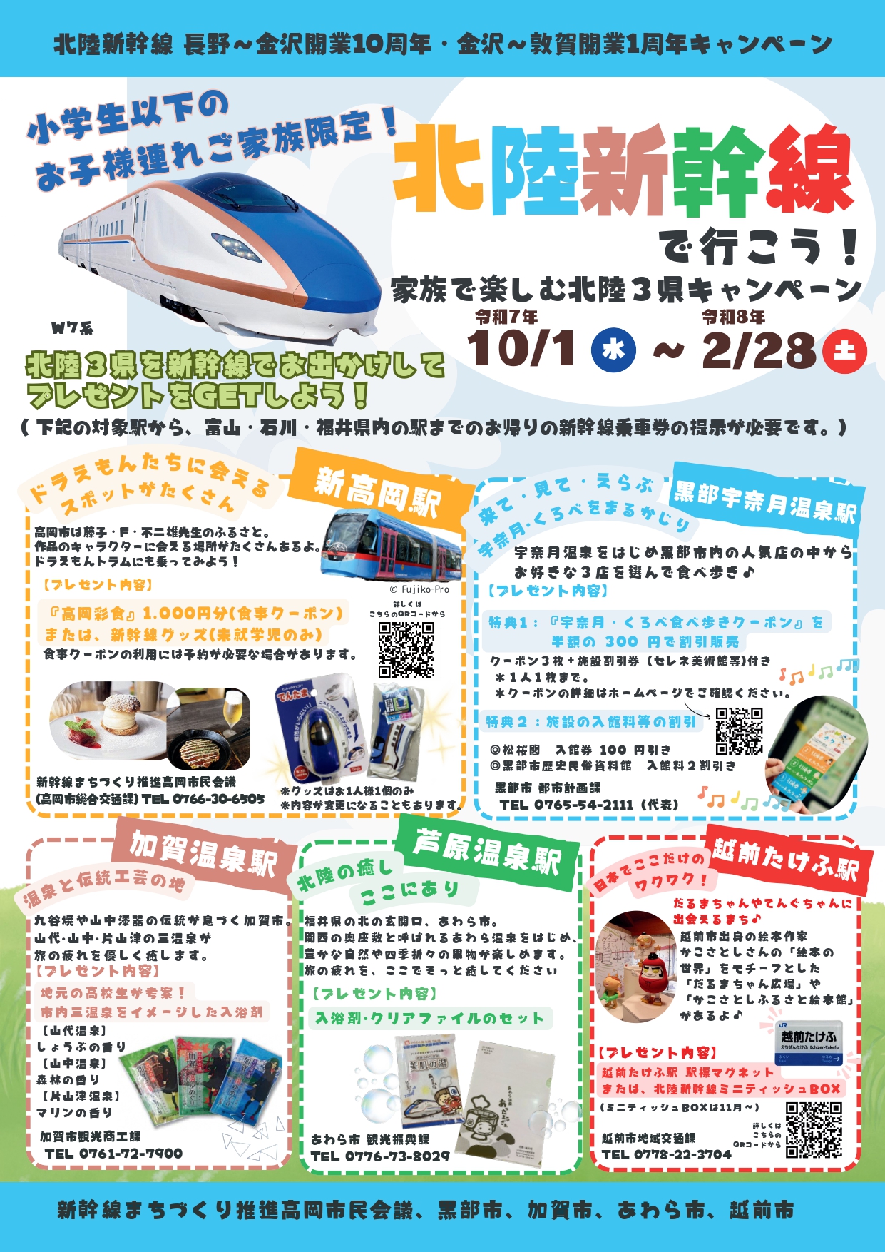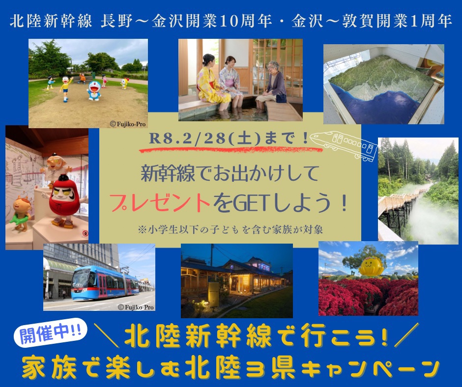 北陸新幹線 長野〜金沢開業10周年・金沢〜敦賀開業1周年を記念した、北陸新幹線を使っておでかけするファミリーにうれしいキャンペーンがスタートしました!