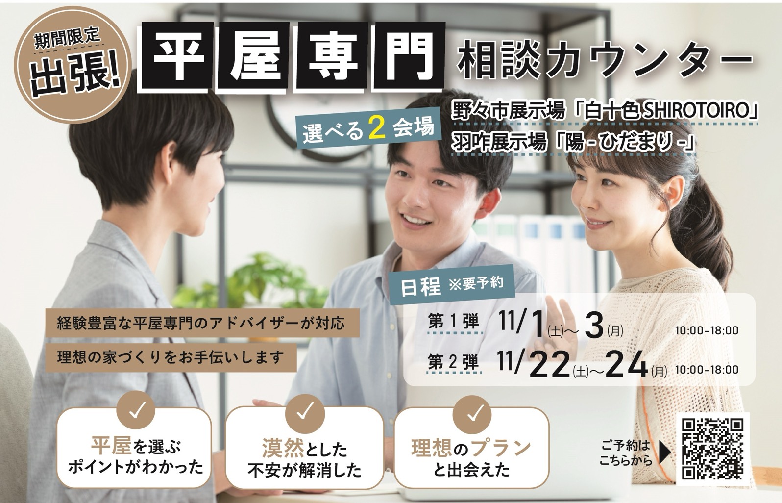 ですが、3連休がある11月は、期間限定で平屋相談カウンターが展示場に出張!