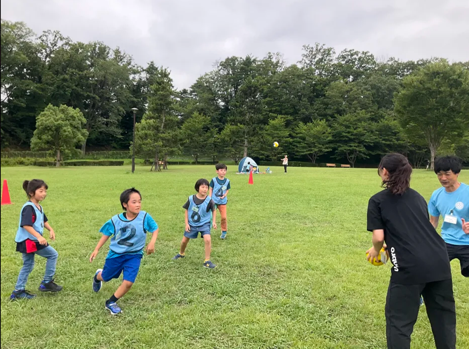 広~い原っぱ広場にて定期開催されている【サニースクールスポーツ教室】では、運動神経を伸ばすのに重要と言われる<ゴールデンエイジ(3歳~10歳)>の子ども達を対象とした運動教室★