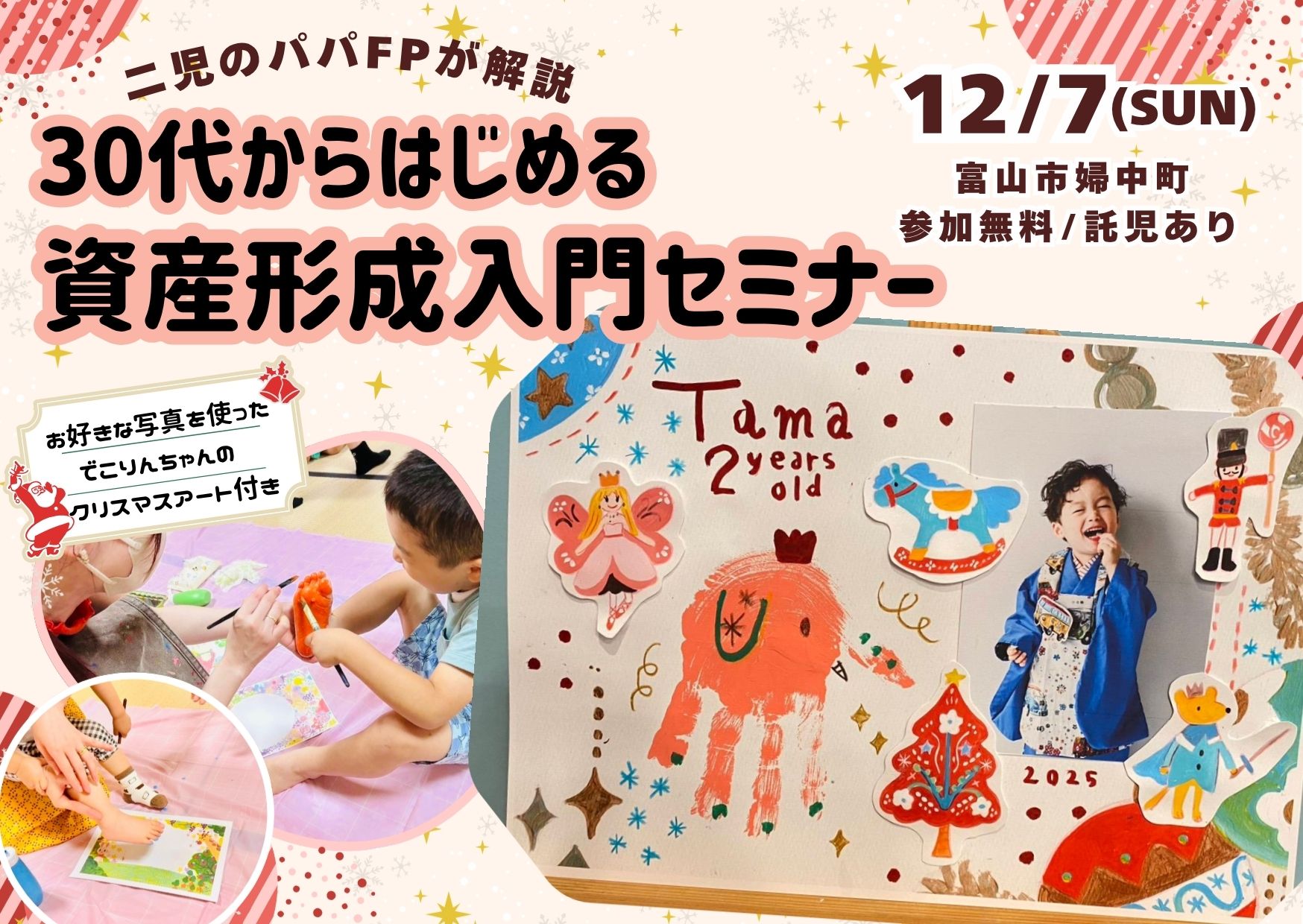 | イベント名 | 【二児のパパFPが解説】30代からはじめる資産形成入門セミナー ~同時開催!でこりんちゃんのクリスマスアートルーム~ |