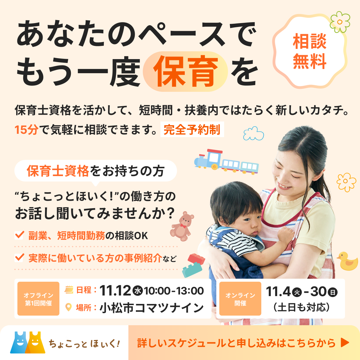 | イベント名 | 15分で聞ける!保育の働き方相談会 |