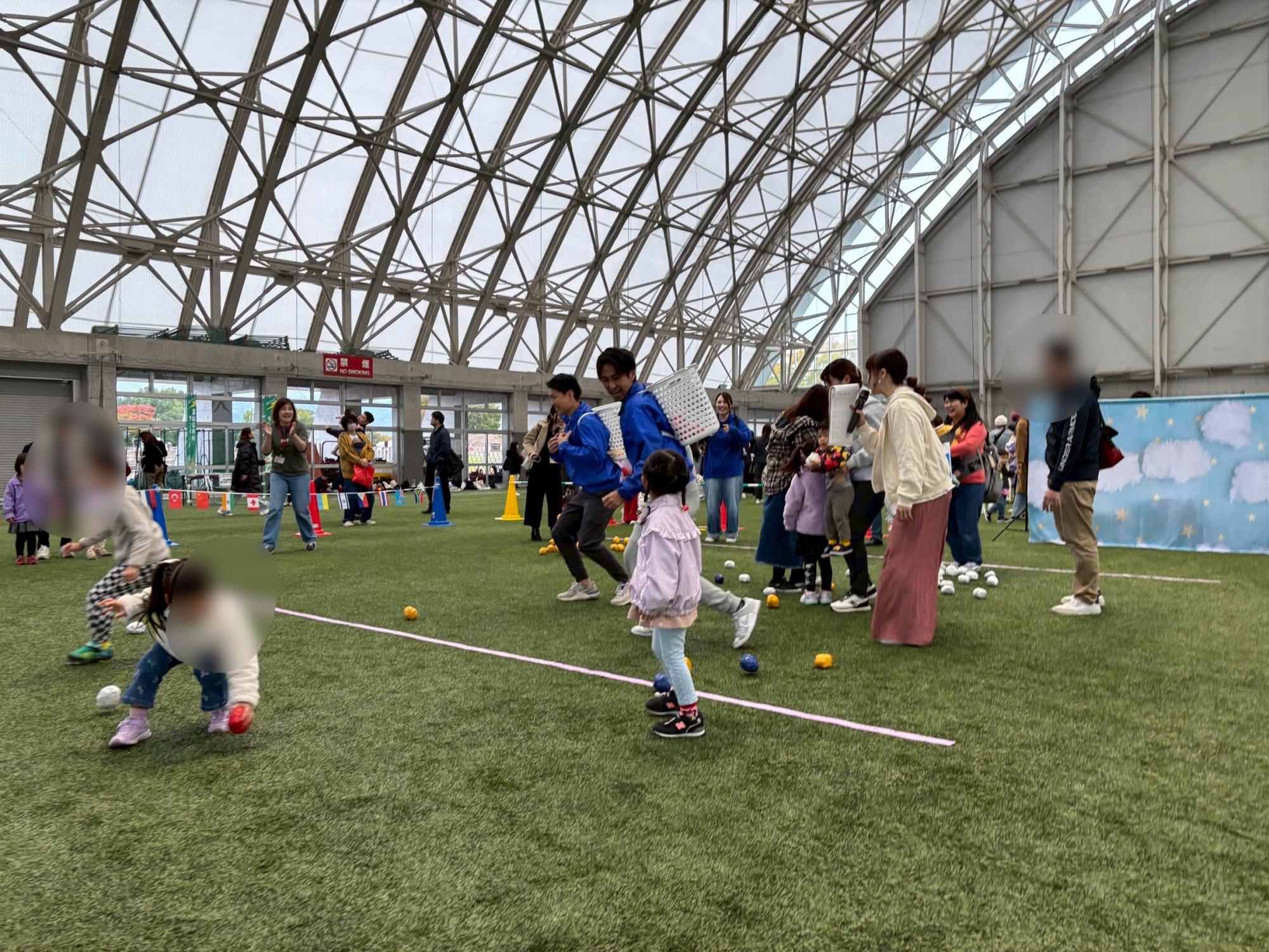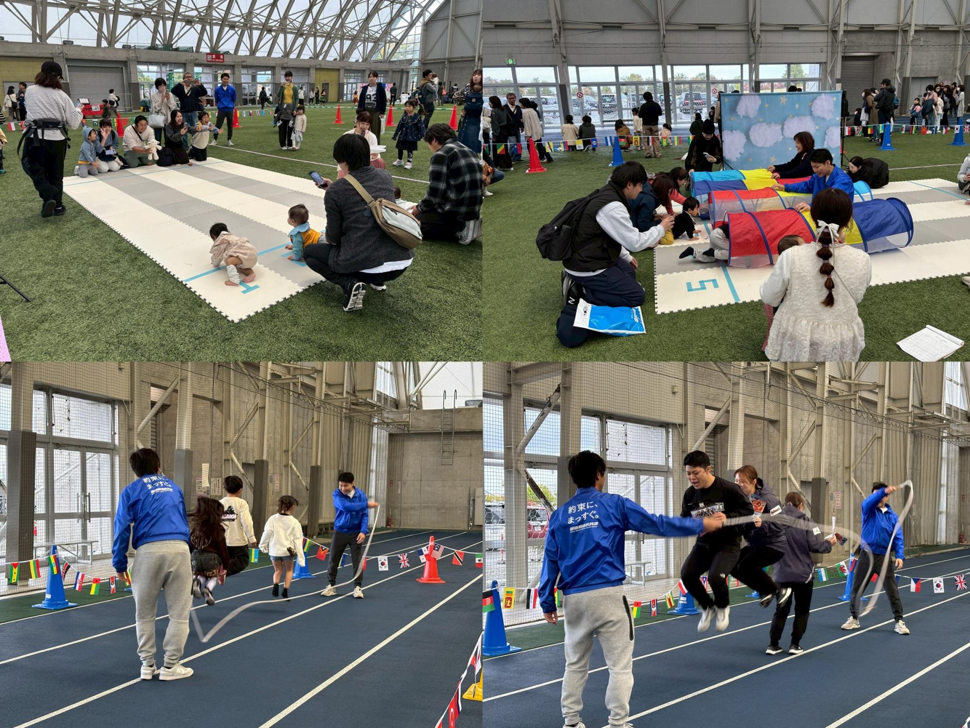 ダンシング玉入れ、カラフル棒引き、大縄跳び、寝返り選手権、ハイハイレース、障害物レースといった、0歳から大人まで参加できるミニ運動会★
