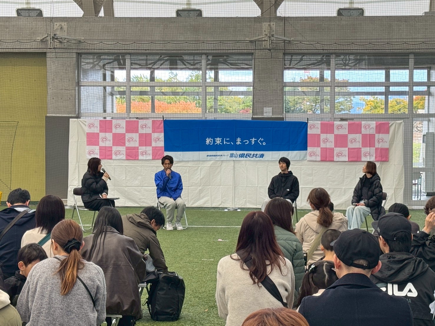 富山県民共済のスタッフさんには、ダンシング玉入れではカゴを担いで子ども達と一緒にジャンボリーミッキーを踊っていただいたり、大縄跳びの大縄を回す大役をしていただいたりと、富山県民共済cupを盛り上げていただきましたよ!ありがとうございました♡