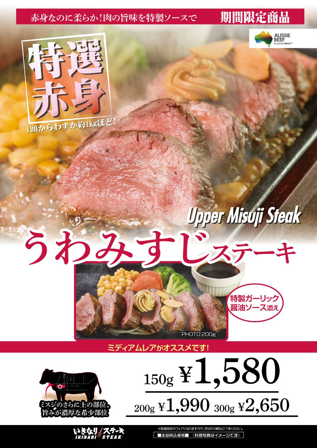 そんな「いきなりステーキ」さんから、うわみすじステーキの期間限定販売のお知らせが届きましたよ!