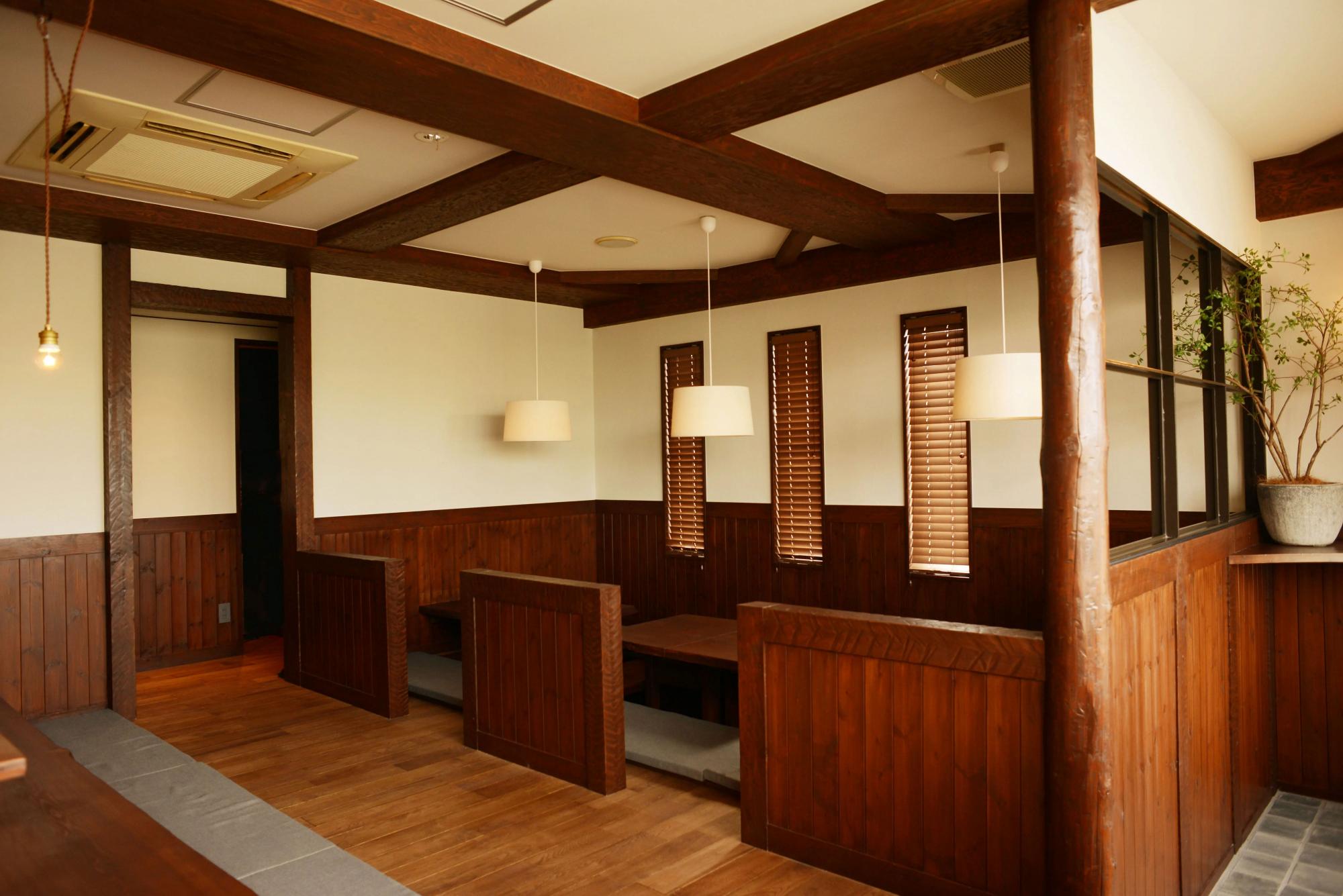 靴を脱いでくつろげる掘りごたつ式の席があり、自宅のようにゆったり過ごせるのが魅力です。赤ちゃんや小さなお子さん連れでも安心して利用できる、温かみのある空間ですよ。おしゃれと居心地のよさが調和していて、何度も足を運びたくなります♡