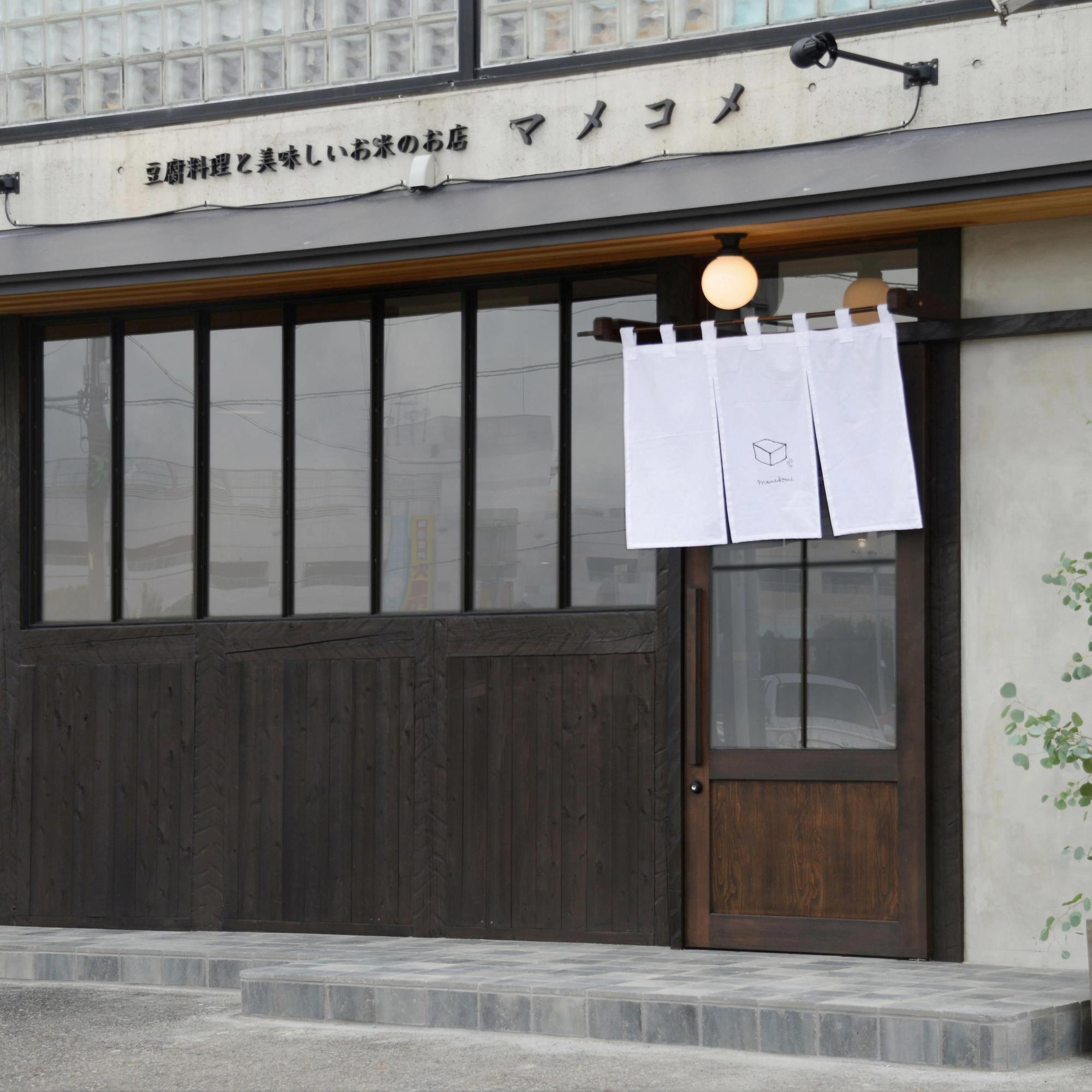 マメコメは、「素材そのもののおいしさをシンプルに味わう」がコンセプトの豆腐料理専門店です。かわいらしい豆腐のイラストが描かれたのれんが目印です♪
