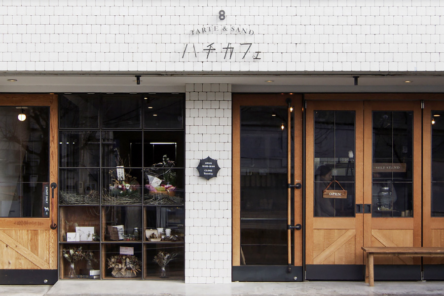 ハチカフェ鶴舞店は、インテリアショップやリノベーションなどを手がけるエイトデザインが運営する、タルトとサンドウィッチのカフェです。