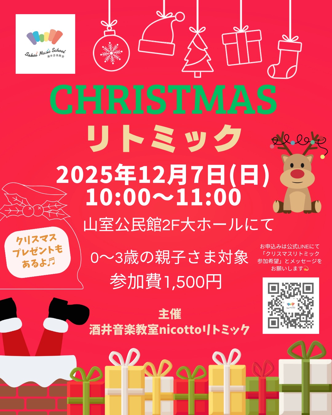心と体を解放して、楽しい!と感じるリトミック時間をクリスマス気分と共に満喫しちゃいましょう♪