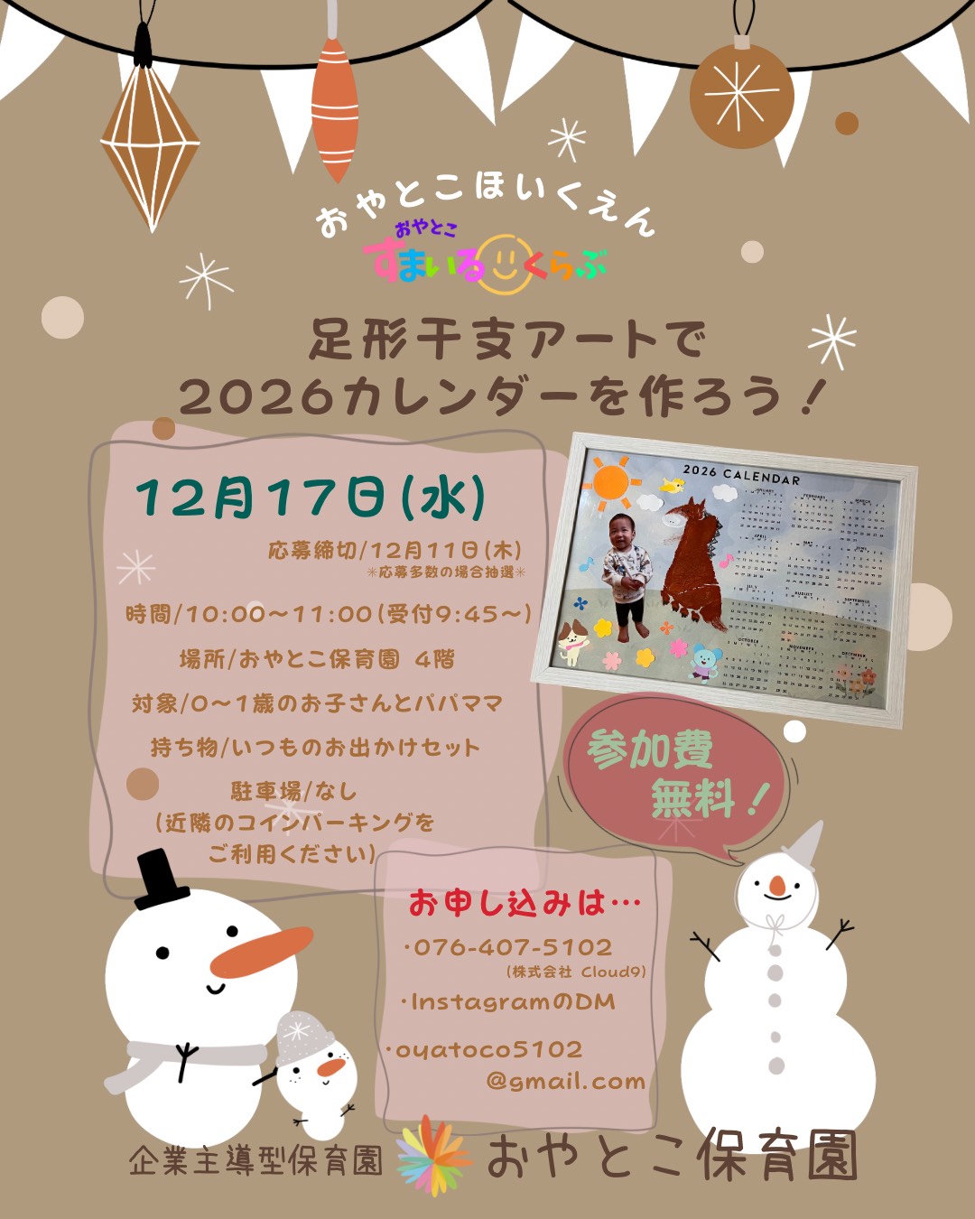 お子さんの“今だけのサイズ”を足形干支アートでカレンダーにして残しませんか?