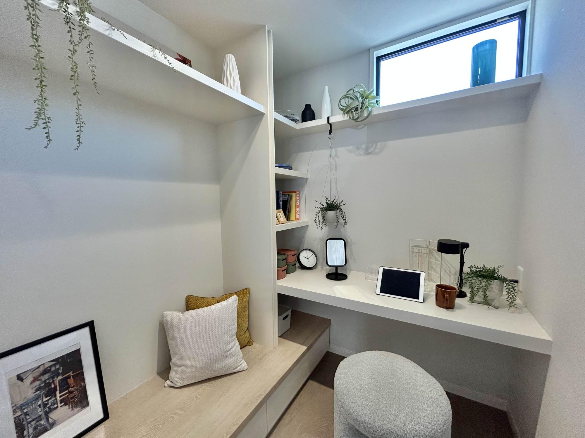 書斎や趣味の部屋として使えるヌックは、明るい光が差し込み気持ちの良い空間です。