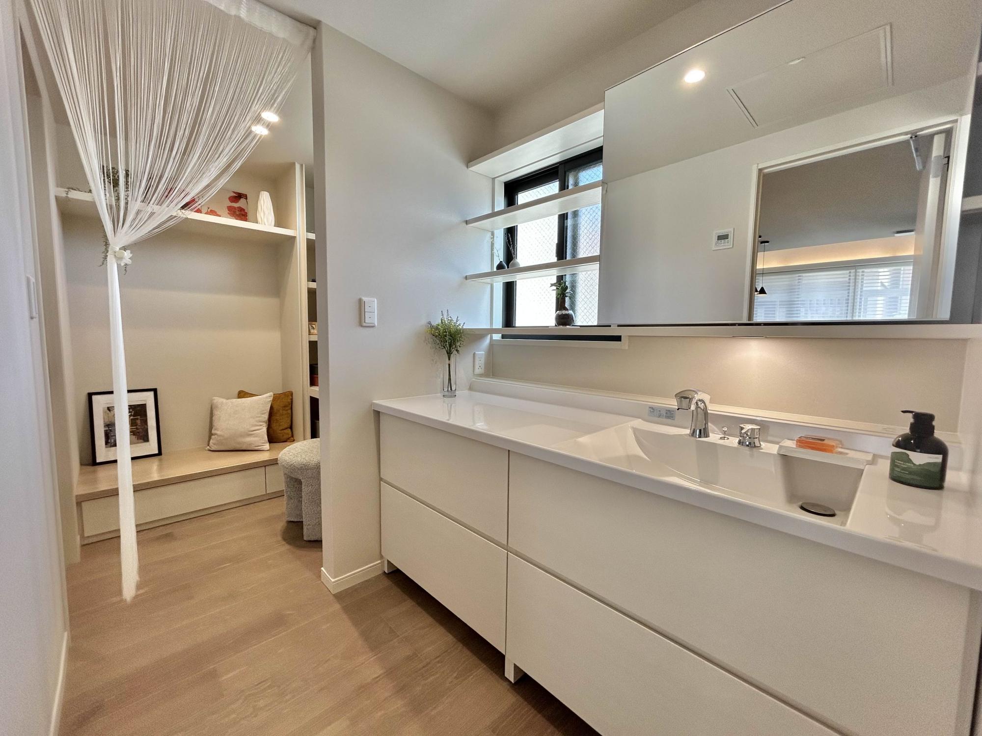脱衣室と洗面スペースが分かれているので、ゆったり使えるのがうれしいポイント♪