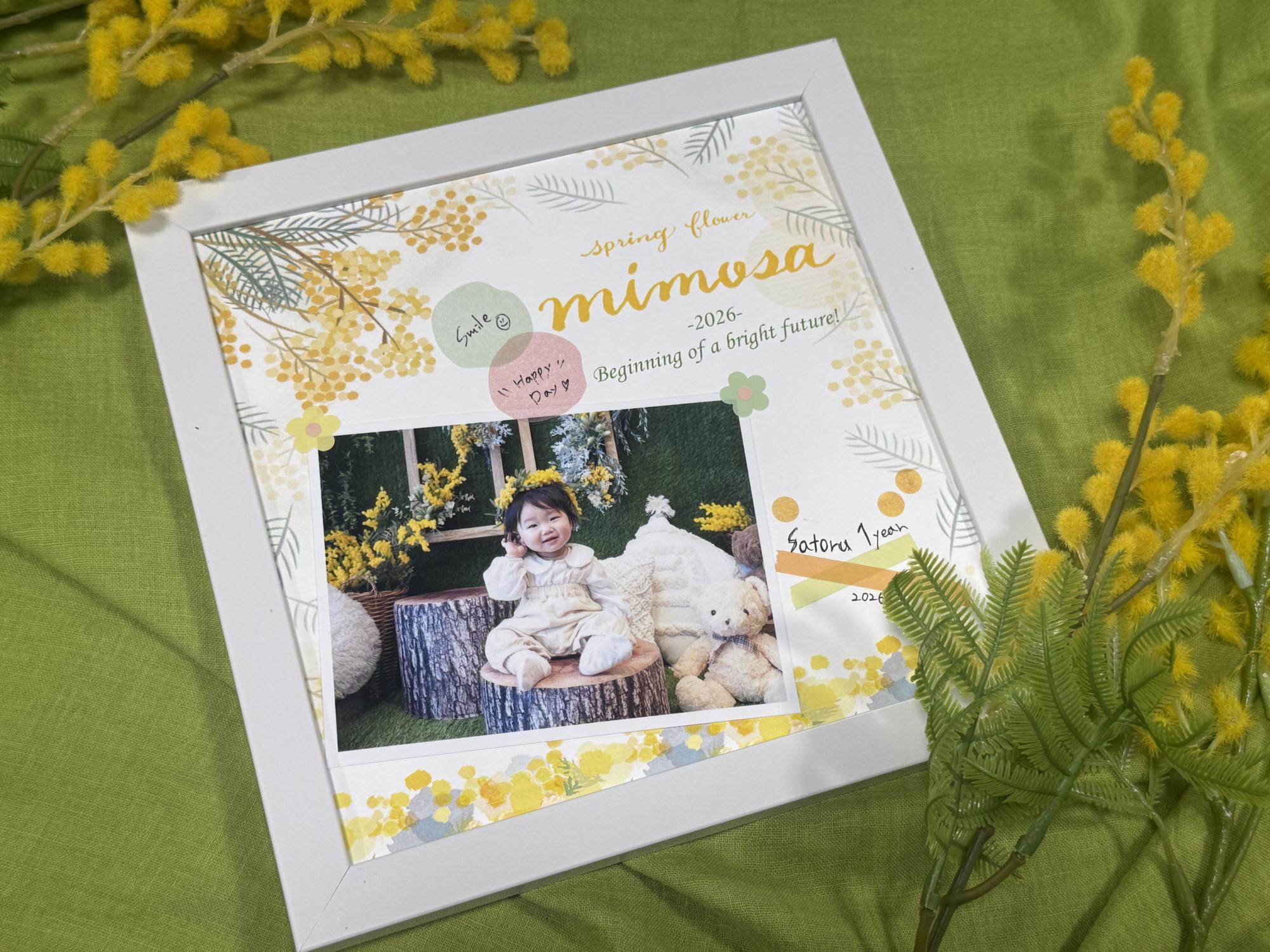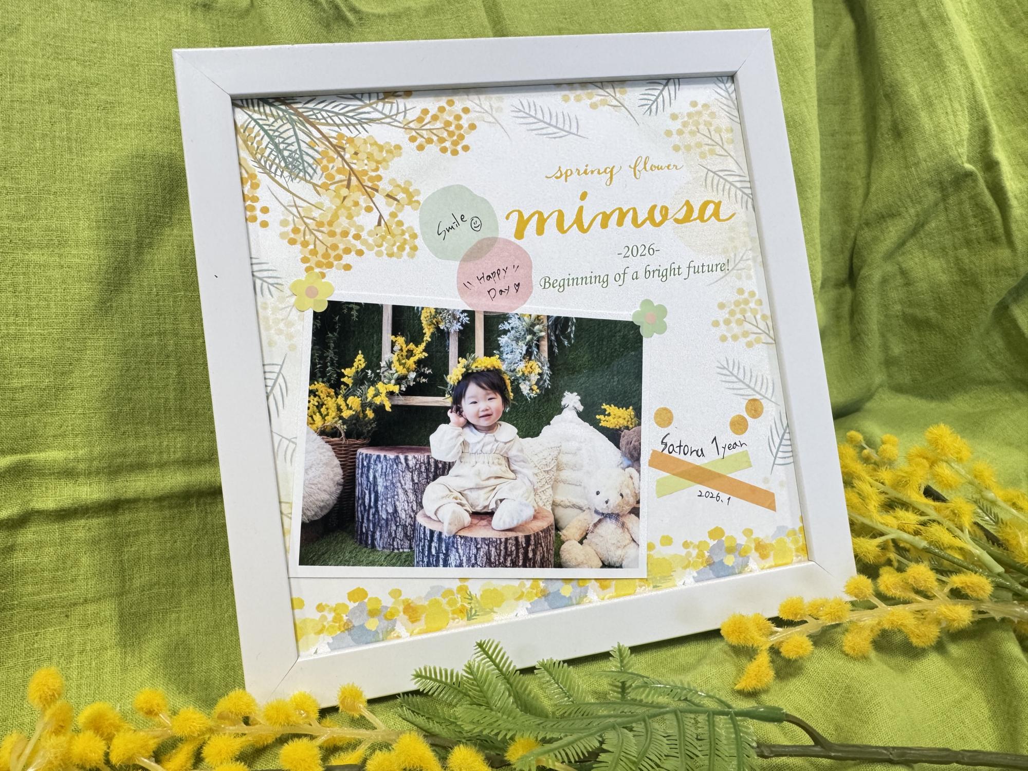 これまでのママズパーティ同様、撮影したお写真を使ってフォトフレーム作りを行います。台紙はイベント限定のミモザデザインでご用意♪完成したらぜひおうちに飾ってくださいね♡
